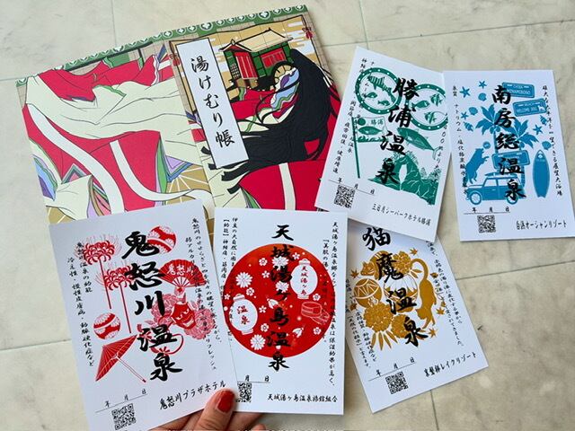 温泉印取り扱い施設を巡り温泉印を集めたり、旅先で撮った思い出の写真を収めたり、裏面には手書きが可能なので訪れた場所の記録やスタンプなどを押すこともできます。